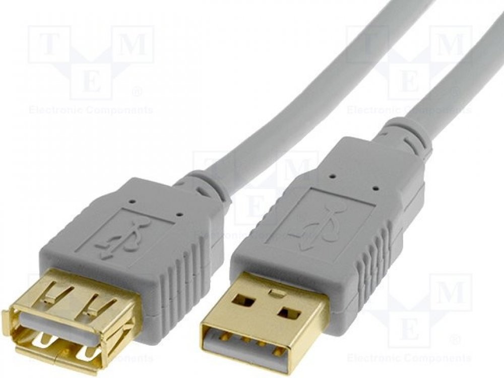 - Kabel USB A zástrčka - USB A zásuvka 3m USB 2.0 zlacený