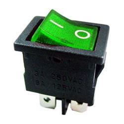 - Přepínač kolébkový 2pol./4pin ON-OFF 250V/6A pros. zelený