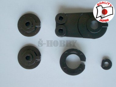 Plastové díly servosaveru originál TAMIYA. Dvě kola pro různé typy serv a páka pro dva kulové čepy. Obsahuje plastové díly dle fota.