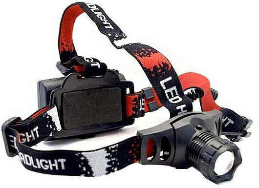 Svítilna - čelovka s velkou výdrží baterií a funkcí zoom-focus (soustředění paprsku do většího nebo menšího kužele)